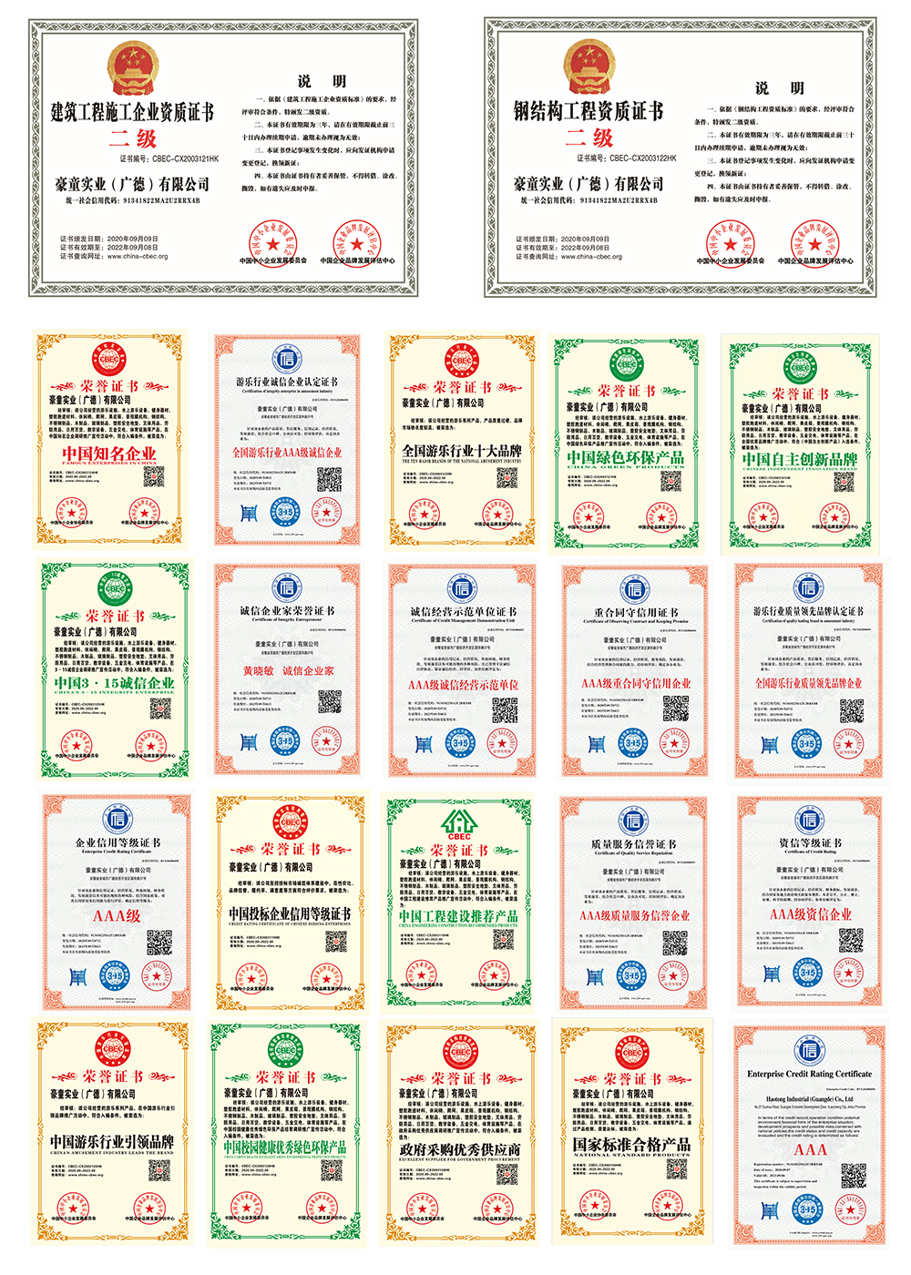 豪童实业(广德)有限公司是一家集设计研发、生产制造、销售、安装、售后服务为一体的综合型游乐设备生产实体企业。公司始终坚持以市场为导向,以满足客户的需求为已任,多年来专业生产各类室内、户外游乐设施,产品含室内外大型非标游乐设备、组合滑梯、公园配套设备、幼儿园配套设备、玻璃钢雕塑、景观园林游乐设备、景区大型游乐设备,公园主题乐园设备等为主的产品体系。销售网络成功遍布国内各大城市并成功出口到欧洲,俄罗斯,中东,东南亚及非洲四十多个国家,深受客户的信赖和好评,相关配套产业链完善。